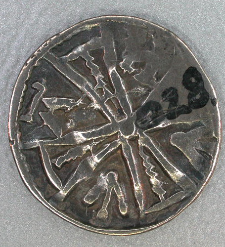 - BeschrijvingVz: De burcht van Antwerpen, omgeven door een parelrand. Kz: Brabants kruis in de kwartieren de letters A-N en twee fleurons.