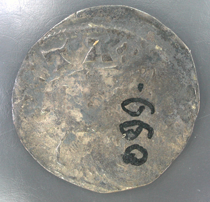 - BeschrijvingVz: Het wapen van Brabant (klimmende leeuw op een schild) daarboven een kruisje, geflankeerd door twee vijfbladige bloemen. Links en rechts het omschrift. Kz: Dubbellijnig gevoet kruis, dat twee door een stippellijn van elkaar gescheiden omschriften doorsnijdt. Om het geheel een parelrand.
