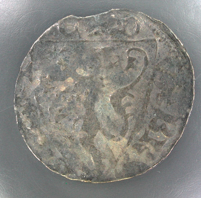 - BeschrijvingVz: Het wapen van Brabant (klimmende leeuw op een schild), Daaromheen het omschrift en een parelrand. Kz: Dubbellijnig gevoet kruis, dat twee door een parelrand van elkaar gescheiden omschriften doorsnijdt.