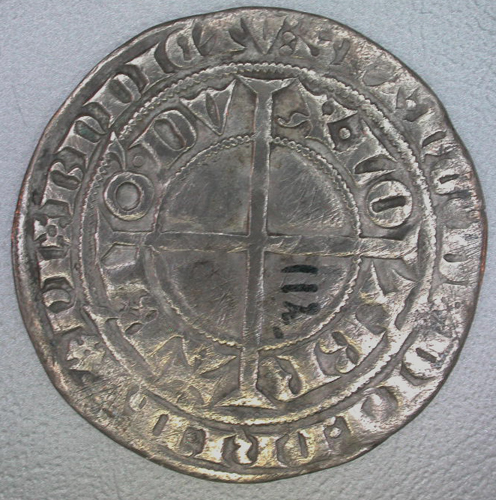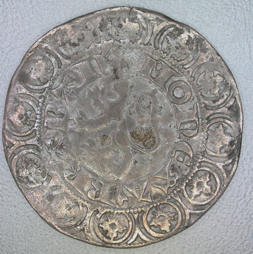 - BeschrijvingVz: Klimmende leeuw naar links, daarboven een kleine adelaar. Ronde de leeuw het omschrift. Daaromheen tussten twee parelranden een krans van schildjes met elf driebladige bloemen en een leeuwtje. Kz: Middellang gevoet kruis dat het binnenste van twee door parelranden van elkaar gescheiden omschriften doorsnijdt.