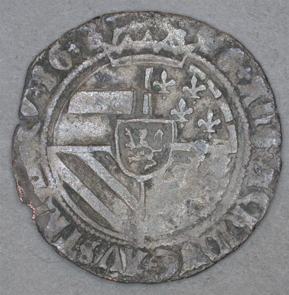 - BeschrijvingVz: Het gehele veld beslaande hertogelijke wapen. Boven het wapen een kroon. Kz: Lang gevoet kruis, met een leeuwtje in het hart. In de kwartieren binnen de parelrand twee kroontjes en twee fleur-de-lis. Paarsgewijze tegenover elkaar. Tussen twee parelranden het omschrift.