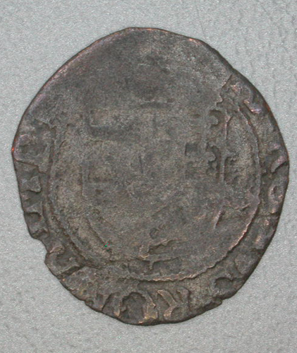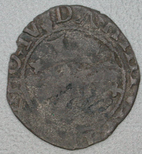Kz: binnen een parelrand een gevoet kruis met een leeuwtje in het hart, in de kwartie¬ren twee leeuwtjes en twee fleurs-de-lis (op beide munten wisselend in volgorde); omschrift: DA+MICHI+VIRT+COTR+HO+TV, handje
