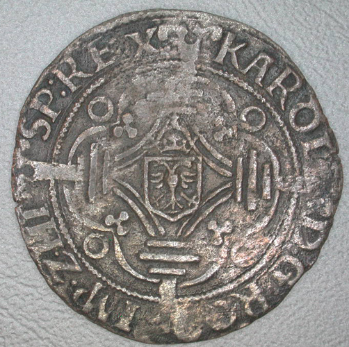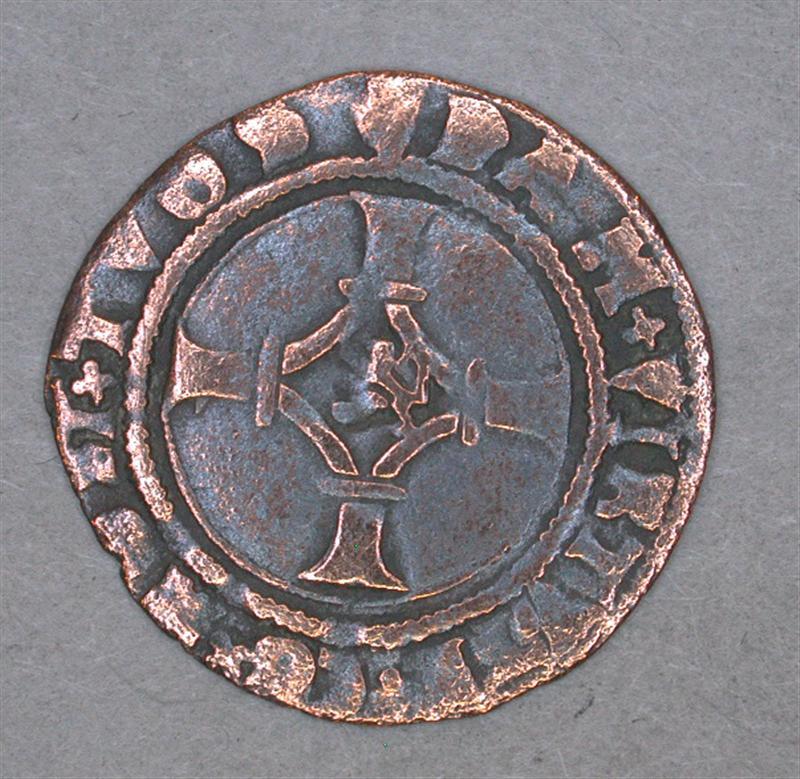 - BeschrijvingVz: Een gekroonde K met een stip tussen de bovenste stukken. Tussen twee parelranden het omschrift. Kz: Een door een getrokken rand omvat kruis met in het opgewerkte hart een leeuwtje. Tussen twee parelranden het omschrift.