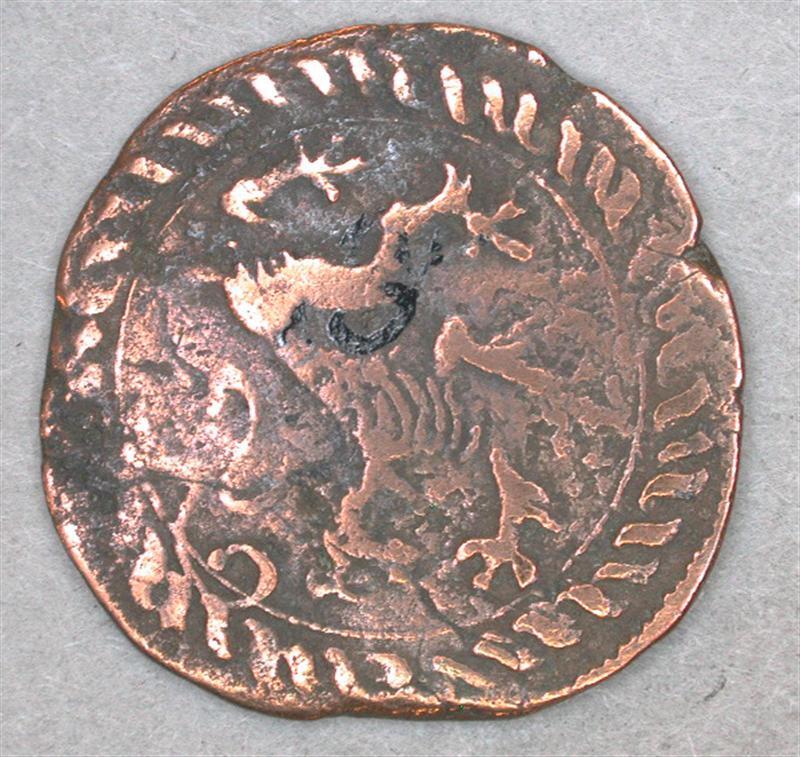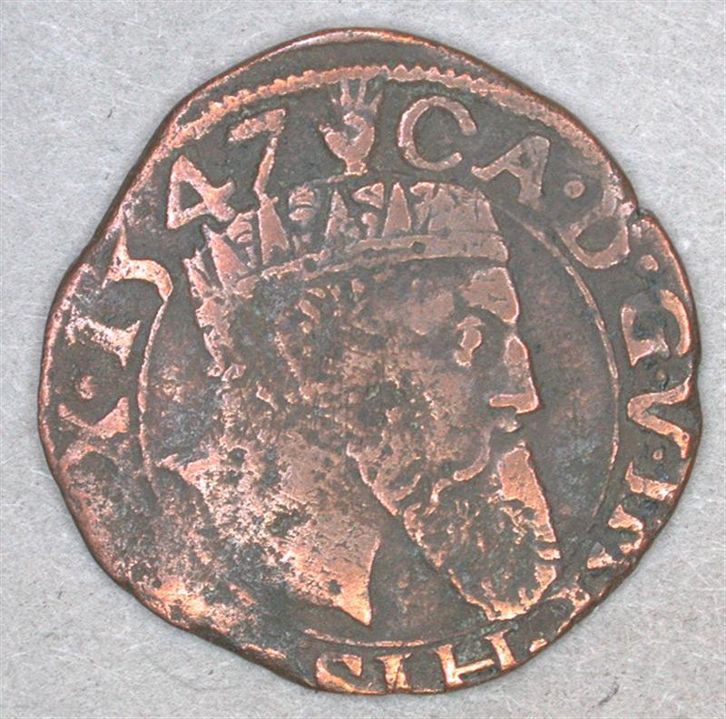 - BeschrijvingVz: Een gekroonde hoofd van Karel V naar rechts. Tussen een getrokken rand en een parelrand het omschrift. Kz: Een klimmende leeuw binnen een getrokken rand, een kabelrand en een parelrand.