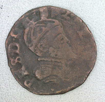 - BeschrijvingVz:Gekroond borstbeeld van Philips II naar rechts. Daaromheen het omschrift en een parelrand. Kz: Binnen een lauwerkrans een vierpas of vierbladige bloem, omgeven door vier vuurstalen waaruit vonken ontspringen. Om het geheel een parelrand.