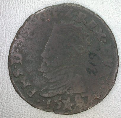 - BeschrijvingVz: Het naar links gewende, gekroonde borstbeeld van Philips II. Daaromheen het omschrift en een parelrand. Kz: Het gekroonde Oostenrijks-Bourgondische wapen. Daaromheen het omschrift en een parelrand.