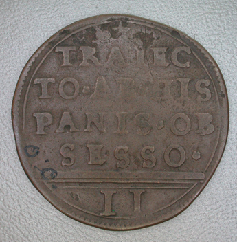 - BeschrijvingVz: Een vijfpuntige ster daaronder het opschrift. In de afsnede de waarde-aanduiding II. Om het geheel een getrokken rand en een parelrand. Kz: Het stadswapen van Maastricht in een rolwerkomlijsting boven het wapen een zwaard. Ter weerszijden van het wapen het opschrift. Om het geheel een getrokken rand en een parelrand.