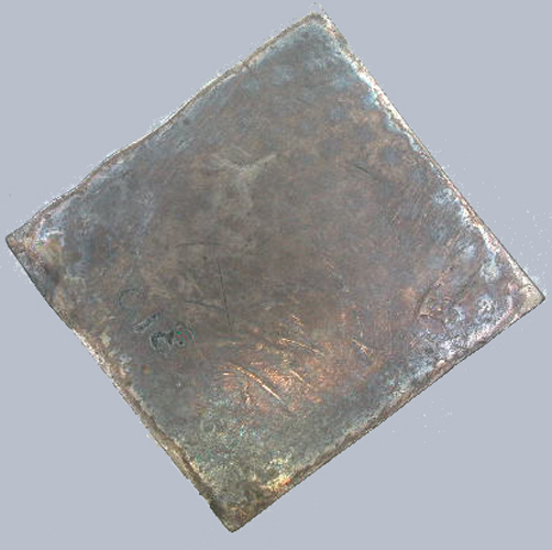 - BeschrijvingRuitvormige munt, eenzijdig gestempeld. Vz: Het stadswapen van Breda. Tussen een getrokken rand en een parelrand het omschrift. Daarbuiten twee kloppen: XX en "roos". Kz: blanco.