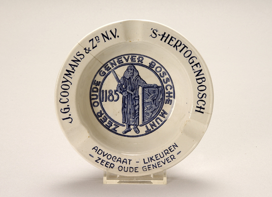 - BeschrijvingGemaakt t.g.v. het 750-jarig bestaan van 's-Hertogenbosch (?). Op de rand: J.G. COOYMANS & ZN N.V. 's-HERTOGENBOSCH/ADVOCAAT-LIKEUREN-ZEER OUDE GENEVER. Centrum: Man met zwaard, schild met Brabantse leeuw en jaartal 1185 (=Hendrik I). Rond hem: ZEER OUDE GENEVER BOSSCHE MUNT