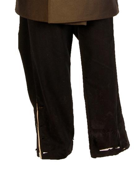 Model 29 dec. 1882, rijbroek, voor majoor. Pantalon van donkerblauw laken. Midden voor blinde sluiting met 4 knoopjes (3 metalen met het opschrift PATENT 1888 en een zwart metalen knoopje) en 4 knoopsgaten. Op hoogte tailleband een haak en een oog. Boven aan de onderslag een knoopsgat. Op de binnenzijde van het tailleband (links voor) een metalen knoop met opschrift FOR GENTLEMEN. Op beide voorpanden 2 steekzakken met opgestikte accolades. Tussen voorsluiting en rechter steekzak een klein steekzakje, eveneens met opgestikte accolade. Op beide zijnaden biezen van wit wollen laken. Onder in de zijnaden splitten, gesloten met 3 zwarte ebonieten knoopjes. Op rechter achterpand steekzakje met knoop en knoopsgat. Split in tailleband en gedeelte achternaad. Middenachter spie van donkerblauw kamgaren. Taillewijdte te verstellen met 2 bandjes van donkerblauw laken en een metalen gesp op het achterpand. Voorsluiting, bandjes op achterpand, splitjes in de pijpen en de randen langs de zomen van de pijpen zijn gevoerd met bruine keperkatoen. Tailleband en bovenste gedeelte achterpand gevoerd met ecru katoenen satinet, bedrukt met fantasiestrepen. Zakken van naturelkleurig linnen.