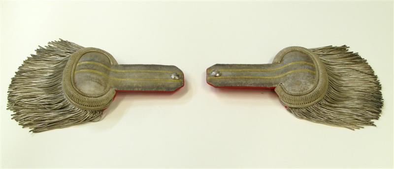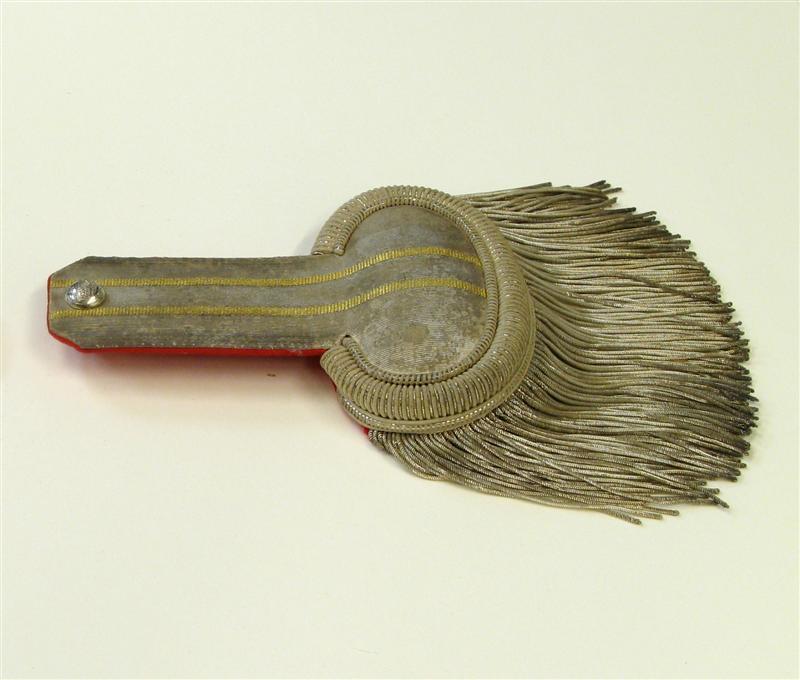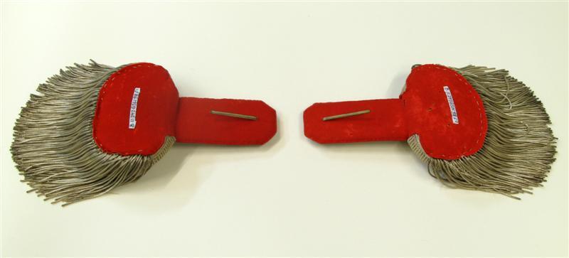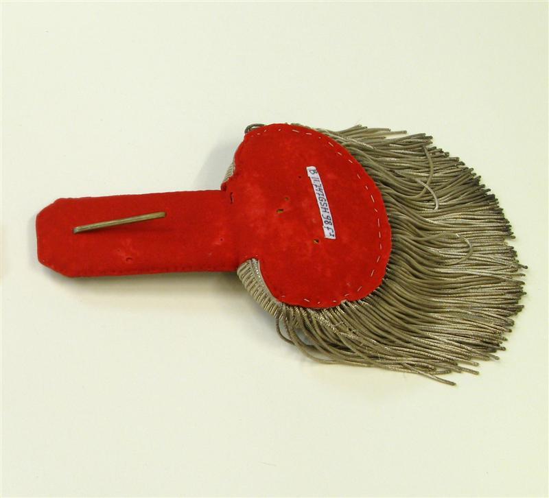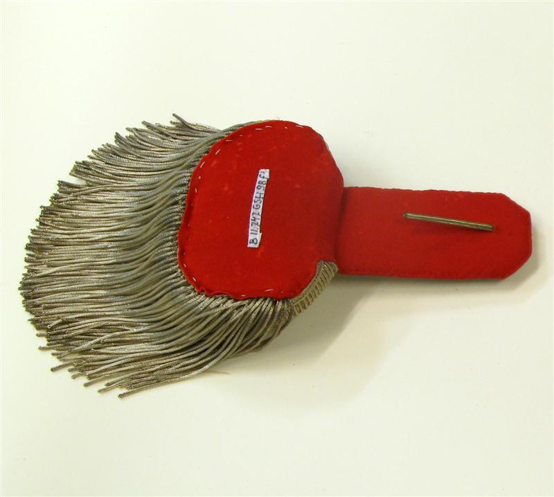 - BeschrijvingKenmerken: 2e luitenant: dunne franje,twee strepen. Gevoerd met fel rood laken.