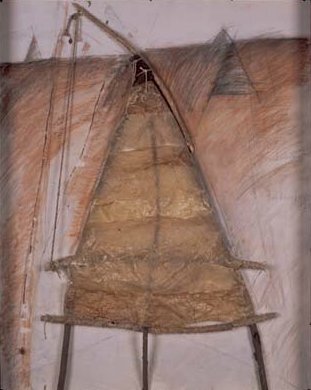 - BeschrijvingAssemblage in kast met glazen ruit met opschrift: "Driehoeksruiter".