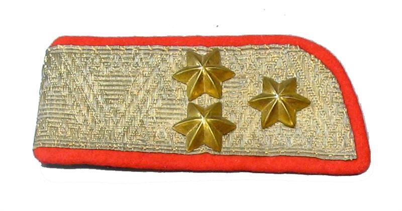 Kolonel: 3 gouden sterren op goudband. Kraag: rood laken. Voering: zwart laken.