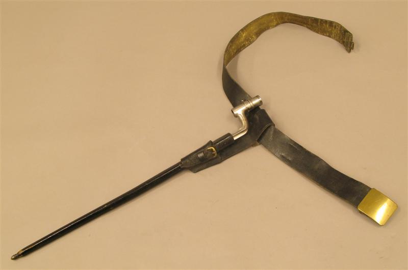 Zwarte leren schede voor Beaumontgeweer. Zwarte leren bovenband met riempje.