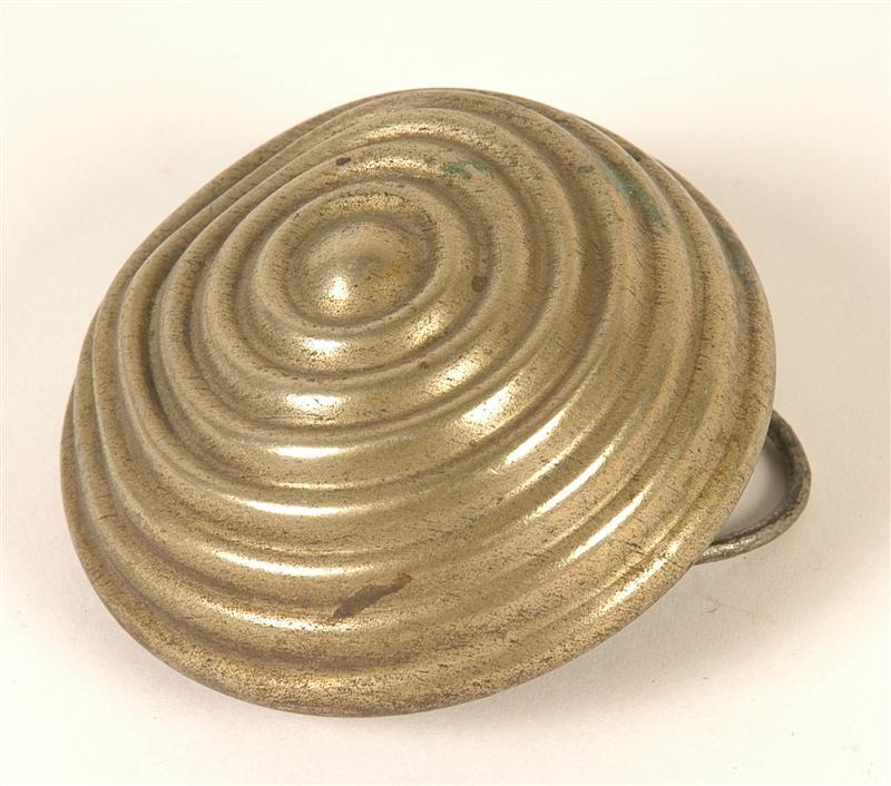 Blank metalen bal. Voorzijde met concentrische ringen. Achterzijde vlak, metaal. Model 1854, voor onderofficier en manschappen.