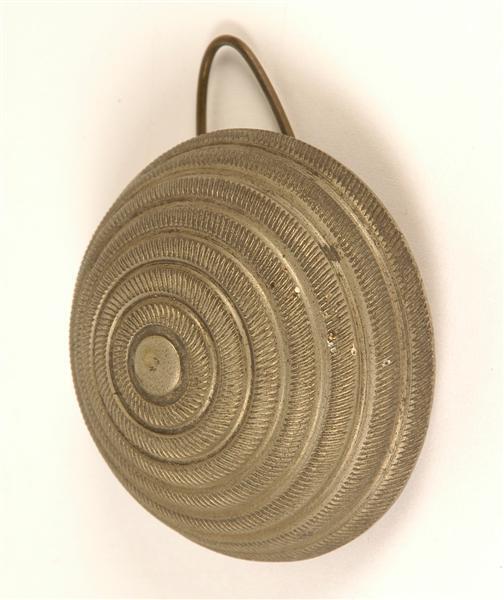 Blank metalen bal. Voorzijde met concentrische ringen. Achterzijde vlak, metaal. Model 1854, voor onderofficier en manschappen.
