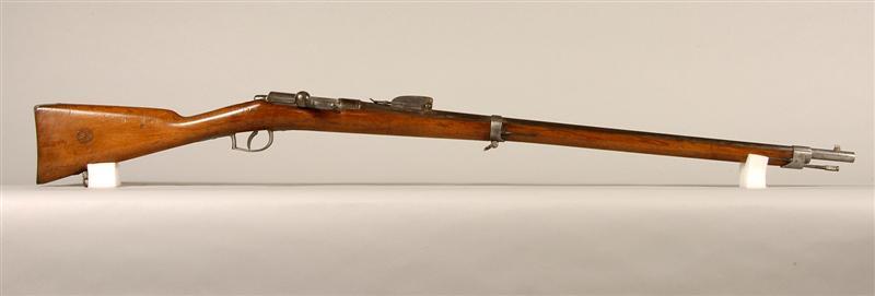 - BeschrijvingModel 1871, bouwjaar 1873, nr. M96. Met ontlaadstok nr. 96 en bajonet nr. M96.