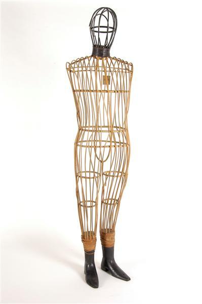 - BeschrijvingNaturel bamboe mannequin met houten kern in de hals en zwarte houten voeten. Om de hals is zwart, om de enkels is naturel gespleten bamboe gewikkeld.