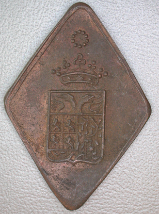 Ruitvormige penning zonder gat en ring. Vz: Gekroond stadswapen midden boven een parelcirkeltje ter aanduiding van het gat voor de ring. Om het geheel een parelrand. Kz: In hoog reliƫf het jaartal 1899. Daaronder drie horizontale lijntjes waarboven het nummer diende te worden ingeslagen. Om het geheel een doorlopende rand