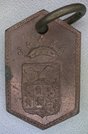 Zeshoekige penning waarvan de verticale zijden langer zijn dan de overige zijden. Middenboven gat en ring Vz: Gekroond stadswapen om het geheel een parelrand. Kz: In hoog reliƫf het jaartal 1894 daaronder is in een kader het nummer 609 ingeslagen. Om het geheel een parelrand