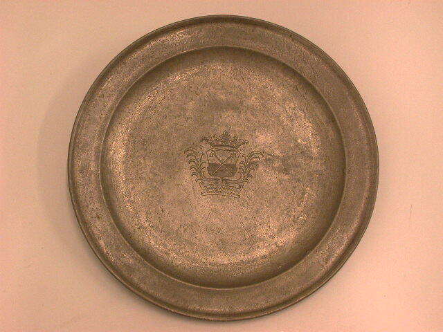 - BeschrijvingHollandse, grote schotel met aan de voorzijde gravering: wapen met tekst: 'De kerkcke Schüttel der Stede Stavoren Aº 1751'. Het gekroonde wapen is geplaatst tussen twee lauwertakken en toont twee gekruiste bisschops- of abtsstaven.