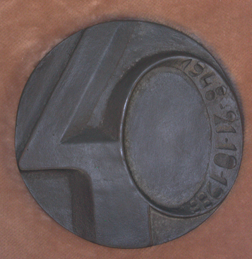- BeschrijvingVz: borstbeelden P.A.M. Eliëns en Th.M. Eliëns-Giesen 'en profil' naar links, elkaar oversnijdend. Kz: het getal 40 in hoog reliëf over het gehele vlak