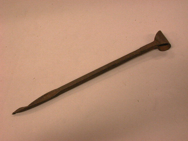 - BeschrijvingSchroefboor of avegaar. Lange, rechte handboor met huls boven aan voor een dwarsstang waarmee de boor wordt rondgedraaid. De schacht is vierhoekig.