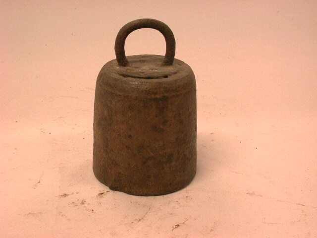 - BeschrijvingKrukgewicht van 3 kilo met loden kraag. Deel van een nest, taps model met geprofileerde bovenkant, vaste gesloten kruk en een loden kraag hierop zijn ijkstempels (massieve driehoek) en gewichtsaanduiding (3/KILO) aangebracht. Voorzien van ijkgat, dat ver is opgevuld.