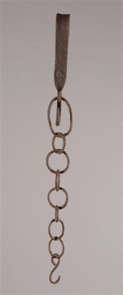 Haalhaak met grote haak en oog waarin acht schakels en een haak zijn geklonken.