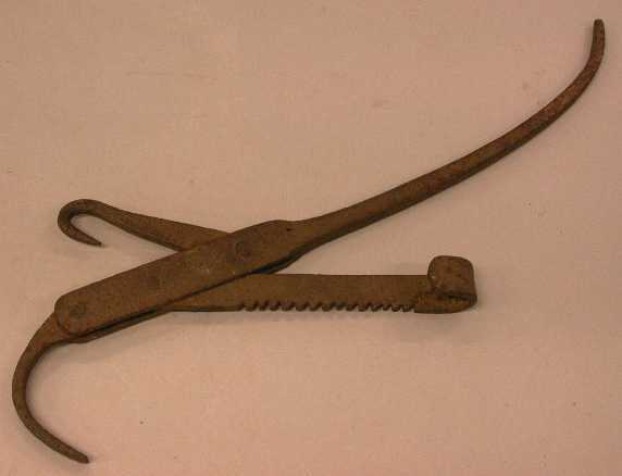 - BeschrijvingIJzeren ketellichter 4-delig: ophanghaak, hefboom, klein haakje dat aan de hefboom scharniert en dient om in het zaagdeel gehaakt te worden. Ketelhaak, lang model met zaagvormige uitsparingen.