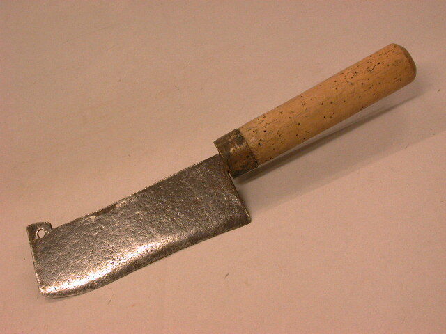 - BeschrijvingHakmes. Rechthoekig lemmet met aan de voorbovenzijde een oog. Recht handvat.
