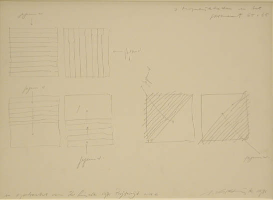 - BeschrijvingGeannoteerd r.b.: 3 mogelijkheden in het formaat 65x65 L.o.: in opdracht van v/d.Linde 1981 Rijswijk NR 6