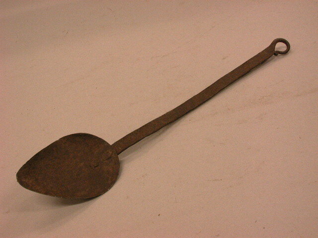 Vuurlepel met ondiep, eivormig lepelblad.