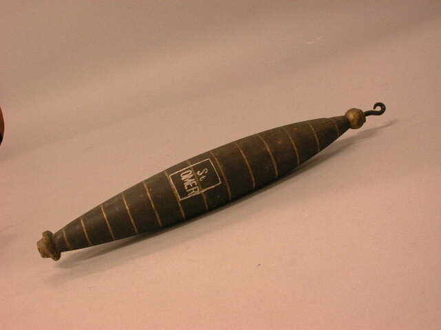 Uithangteken van een tabakswinkel in de vorm van een zogenaamde karot (een gedroogde rol snuiftabak). Houten concave cilinder, zwart met dunne gouden banden beschilderd, boven eindigend in een bolvormige knop, waarin een ijzeren ophanghaak steekt, onder eindigend in een paddestoelvormige (?) knop. Midden op de cilinder, in wit, in een wit vierkant: St./OMER. St. Omer was een bekende soort snuiftabak. Mogelijk afkomstig van de firma J.Dupont, tabak en snuif anno 1810, Schapenmarkt 27 te 's-Hertogenbosch.
