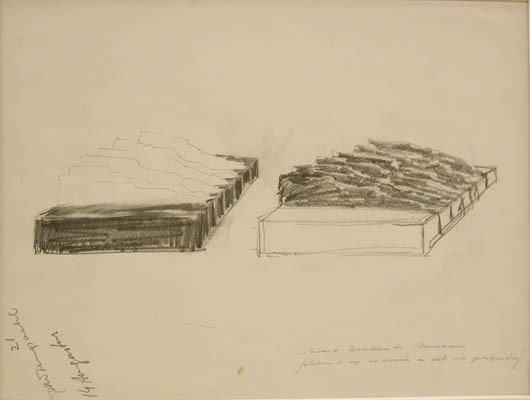 - BeschrijvingSchets voor het in 1987 in opdracht vervaardigde tuinbeeld Absorptie en emissie.