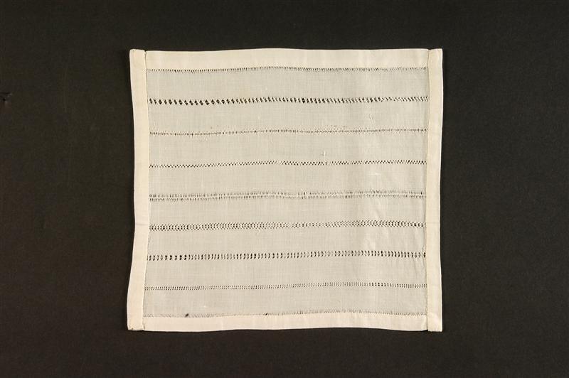 Oefenlapje van fijne witte katoen met open randjes en open naadjes