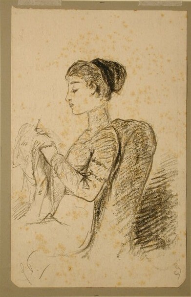 Vrouw met naaldwerk (?)