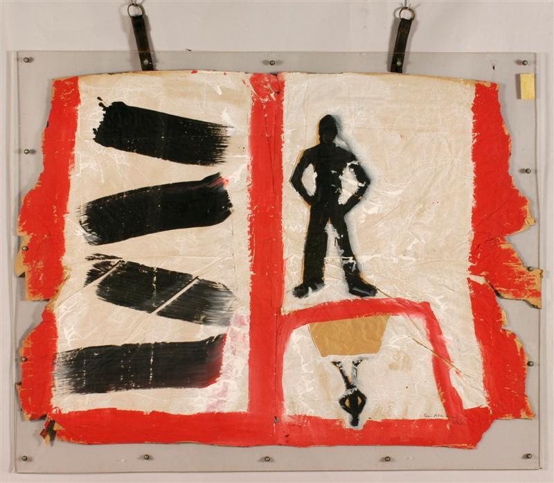 Aan weerszijden beschilderde veevoederzak, vertikaal