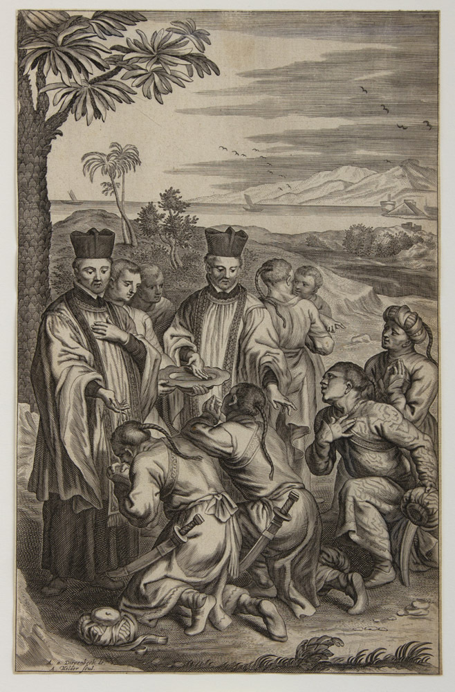 Paters Emanuel Vega en Fransiscus Riccius dopen mannen uit 't rijk Bisnagar