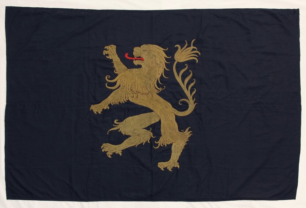 Dundoek met de volgende voorstelling: in sabel een leeuw van goud, getongd van keel, de staart gevorkt. De vlag bestaat uit twee horizontale banen van zwarte stof, waarop een gele leeuw. De leeuw is afgezet en gedetailleerd met gouddraad en bruin garen de tong is rood. Diverse mottengaten en kleinere gaten aan de randen, vermoedelijk ten gevolge van bevestiging. Twee lusjes aan de bovenzijde ten behoeve van bevestiging aan wand of muur.