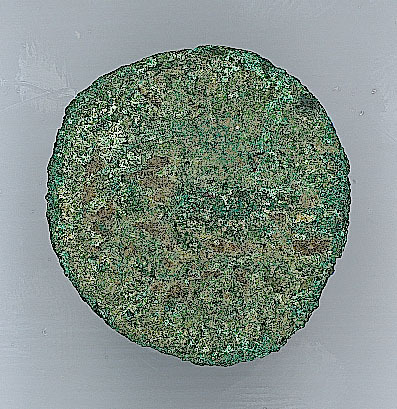 Bronzen, zwaar geoxydeerde munt van Caligula uit Hapert
