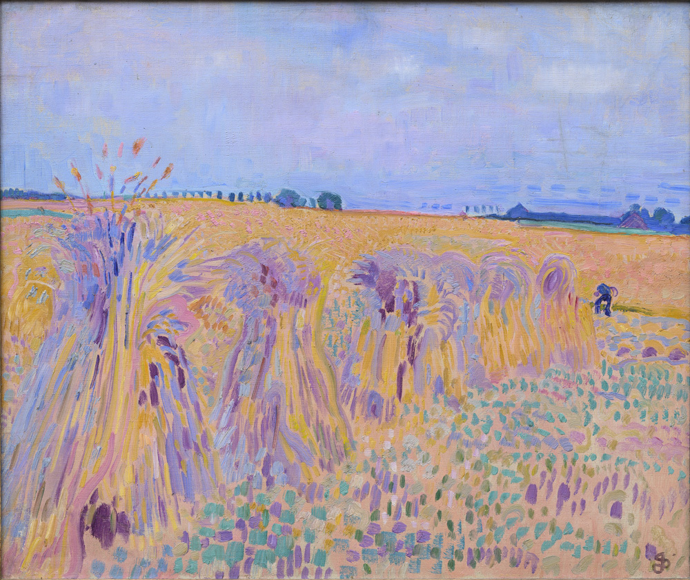 - TitelLandschap met korenschoven