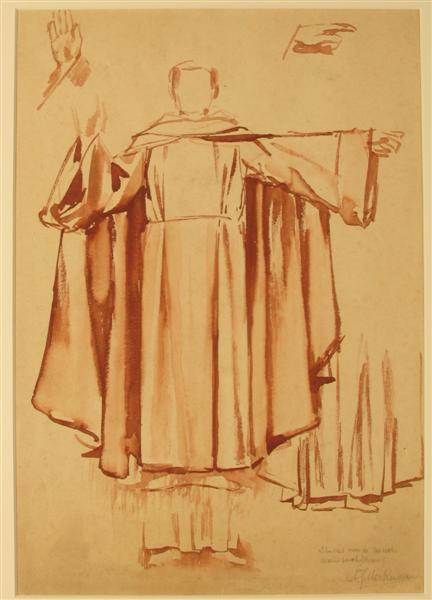 - BeschrijvingVoorstudie voor de zogenoemde Eerste Bossche Wand in stadhuis Den Bosch (1889-1891). Het papier is tweezijdig gebruikt.