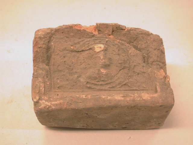- BeschrijvingMannenhoofd naar rechts in rond medaillon. Gotiserende randvullingen. Halfbrede rand met bol binnenprofiel.
