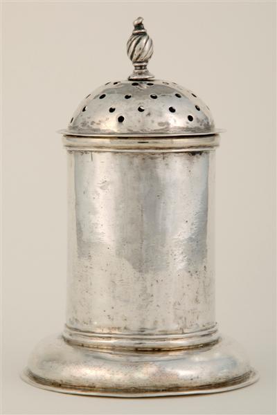 Een kleine, gladde, ronde strooibus rustend op een ronde, breed uitlopende voet. De bolvormige deksel met ronde strooiopeningen wordt bekroond door een gedraaid knopje. De strooier behoord qua vorm tot het vroege type dat ook in andere Nederlandse steden aan het eind van de zeventiende eeuw en rond de eeuwwisseling met de achttiende eeuw, vervaardigd werd.