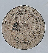 - BeschrijvingVoorzijde: binnen een parelrand een kop naar links, onleesbaar omschrift. Keerzijde: lang gevoet kruis dat binnen een parelrand een blanco vlak in vieren deelt, met omschrift.