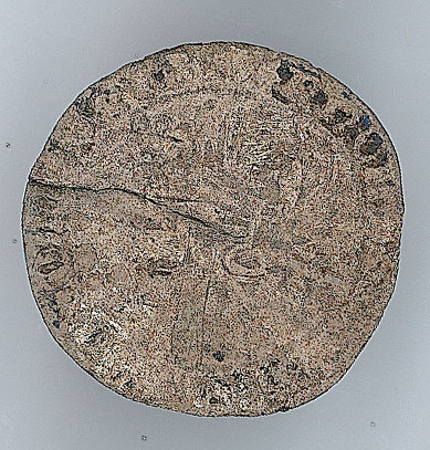 Keerzijde: een lang gevoet kruis, dat een parelrand doorsnijdt. binnen de rand in de kwartieren van het kruis de letters A-N-R-S. In het hart van het kruis een schild met het wapen van Gelre, met een omschrift.