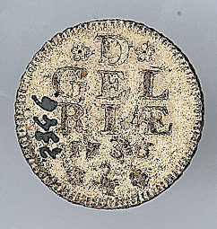 eigenlijk een ficiteve munt. Halve duiten werden sinds het einde van de 16e eeuw niet meer geslagen en waren al sinds lange tijd niet meer in omloop. Geslagen als nieuwjaarspenning.