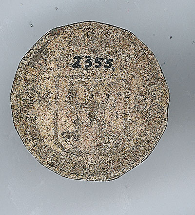 Keerzijde: het gekroonde stadswapen van Nijmegen geflankeerd door de waarde-aanduiding 6-S. De kroon wordt geflankeerd door de laatste cijfers vna het jaartal 8 - 8, met een omschrift. Om het geheel een parelrand.