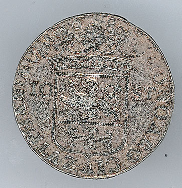- BeschrijvingVoorzijde: het gekroonde stadswapen geflankeerd door de waarde-aanduiding 10-ST, met een omschrift. Keerzijde: de Nederlandse Maagd staande, met lans en vrijheidshoed in de rechterhand, met de linkerhand leunend op een bijbel op een sokkel, met een omschrift.